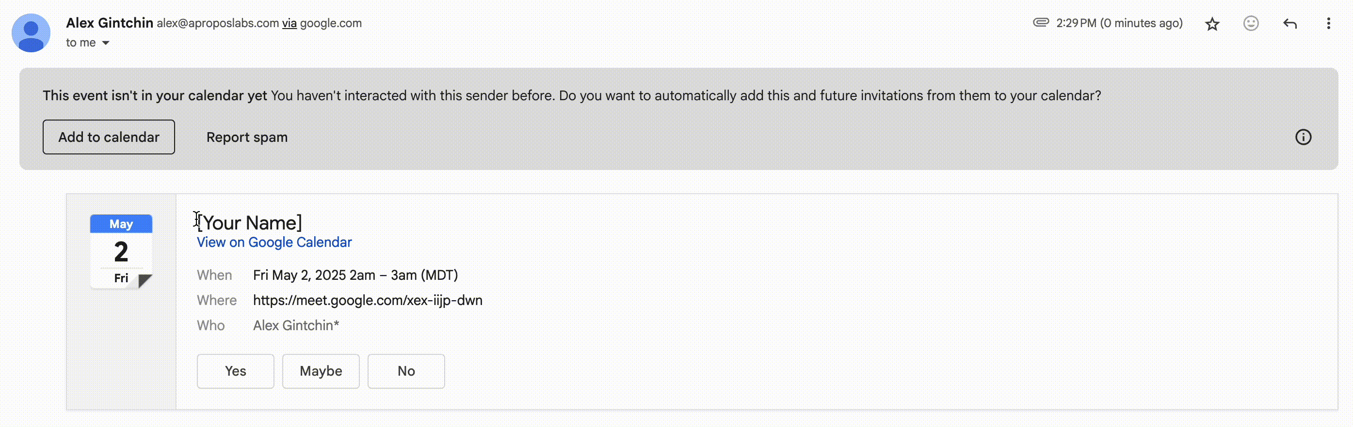 Step 1: Check your email and click “YES” to confirm your attendance.